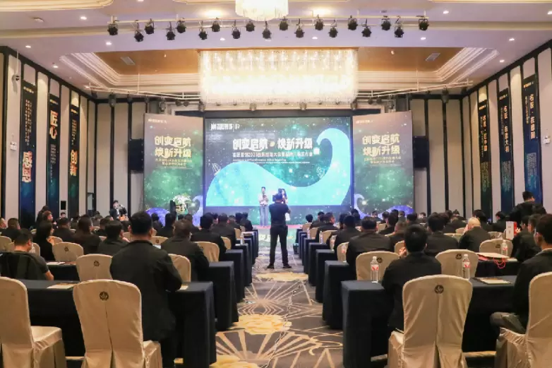 当日下午,品牌升级发布会隆重开启。当灯光渐暗,一段精心制作的品牌升级宣传片在大屏幕上徐徐展开,带领与会者穿越时空,感受名匠装饰从创立至今的蜕变与成长。随后,会场响起轻快的音乐,名匠装饰的激光吉祥物小飞象踏着欢快的音乐绕场一周,象征着品牌将以全新姿态展翅高飞。在万众瞩目下,集团总部领导和各大区总裁共同按下启动按钮,伴随着冷焰的绚丽绽放,现场气氛达到高潮,名匠装饰品牌升级发布会正式启动。这不仅是对过往33年辉煌历程的致敬,更是开启品牌新纪元的重要里程碑,标志着拥有33年历史的名匠装饰品牌迈入全新发展阶段。
