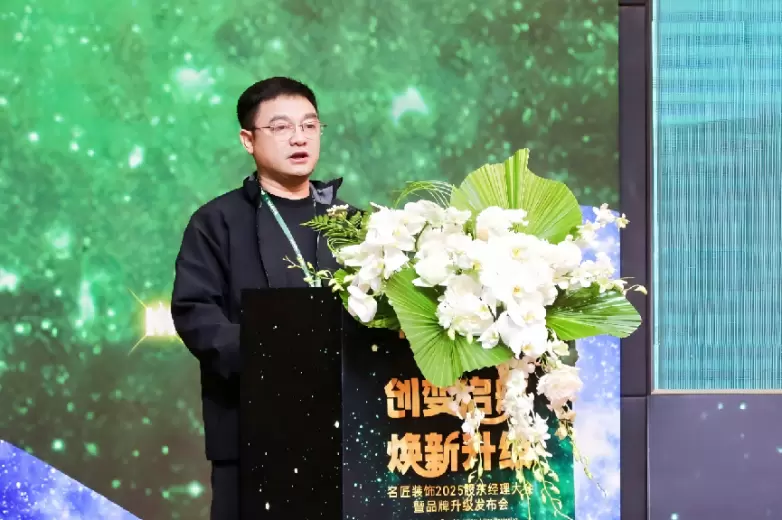 名匠装饰集团总裁李俊先生为品牌升级发布会致辞,他表示,自1992年创立以来,名匠始终秉持"精雕细琢,名匠本色"的经营理念,在激烈的市场竞争中稳步前行。面对日新月异的市场环境和消费者日益多元化的需求,品牌升级不仅是顺应时代的选择,更是主动求变的战略决策。