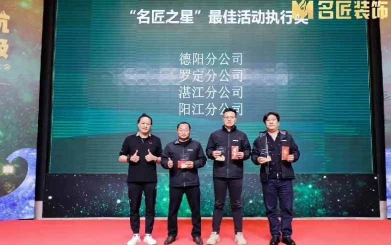 晚宴上,名匠装饰根据大联动表现、新媒体营销成绩、工程质量、团队表现等多个维度,设立了“名匠之星奖”、“新媒体营销之星奖”、“工程匠心奖”、“优秀公司”和“金牌公司”等多个奖项,以表彰在过去一年中表现突出的分公司,获奖公司如下图所示: