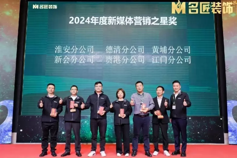 在营销方面,名匠装饰集团营销副总裁温席珍先生对2025年的新营销规划与落地进行了深入解读。温总全面总结回顾了2024年营销六步曲的完成情况及新媒体营销数据成果,并详细阐述了2025年“新”营销八步行的具体规划与实施路径,为公司的营销工作注入了新的活力。