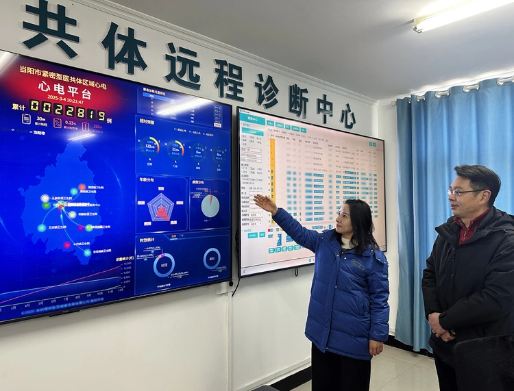 在湖北当阳市,“智医助理”自动拨打健康随访电话,人工智能辅助记录患者病情变化、用药与生活习惯等信息;“心电一张网”串联起市、镇、村三级医疗机构,让偏远农村患者就近享受市级诊疗服务……