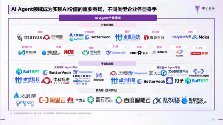 3 月 12 日,备受瞩目的《2025中国AI Agent行业研究报告》由甲子光年重磅发布!在这份极具前瞻性的行业报告中,中科视语凭借卓越的实力脱颖而出,成功入选为国内重点AI Agent厂商的典型案例。该报告旨在挖掘 AI 智能体领域的创新典范与行业标杆,中科视语坤川智能体应用平台的入选标志着其在 AI Agent 技术研发与商业化落地方面的综合实力获得高度认可。