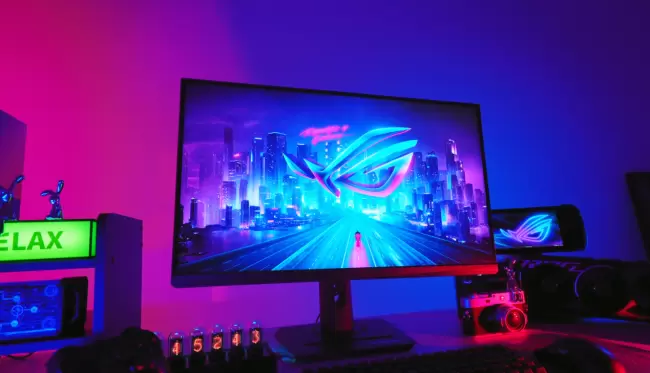 除此之外,ROG绝神27 Pro XG27UCG电竞显示器的色彩表现也同样惊艳。它覆盖了95%DCI-P3色域范围,结合先进的华硕灰阶追踪技术,可以提供顺畅的色彩渐变与均匀性。并且每台显示器出厂前都会经过严苛的预校准,并出具色彩校准报告,玩家可以上手即玩,即刻享受绚烂丰富的色彩画面。同时,它还搭载了由AI驱动的Game Plus技术,提供实时场景分析、十字准线和暗影增强等功能,让玩家体验智能游戏的快感!