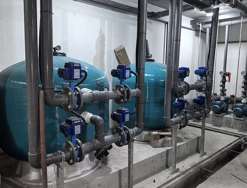 近日,山东青岛崂山区某高档小区游泳池完成了泳池水处理系统的配置安装。该项目采用了AQUA爱克提供的泳池循环水泵、过滤砂缸、泳池恒温热泵以及三集一体除湿热泵等泳池设备,旨在为小区居民提供一个更加舒适、健康和节能的游泳环境。