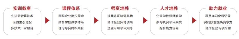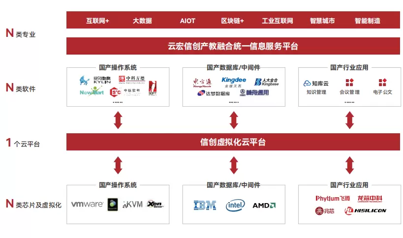 云宏信息作为广东省第一批建设培育产教融合企业,以“技术反哺教育,教育赋能产业”为理念,构建从课程到实战的闭环生态。目前已有成熟的云计算课程体系,与信创适配中心建设运营经验、信创标准制定、信创项目落地经验,在产教融合方面可以联合高校共同开展相关工作,加速科研成果转化。