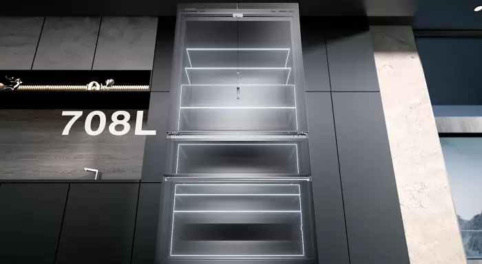 COLMO突破传统冰箱设计边界,打造领先原创708L超大容量的纯平全嵌冰箱。图灵冰箱足可收纳多口之家食用1个月的食材,且机身厚度仅有600mm,结合底部前洄散热技术,无需厨改即可直接嵌入标准深度橱柜;两侧缝隙仅有2mm,可通过鸥翼变轨铰链实现90°开门,避免空间狭小造成的不适。真正实现正面0落差、两侧微缝隙安装,全面满足用户对于超大容量、美学设计的双重需求,还获得了2025德国iF设计大奖。