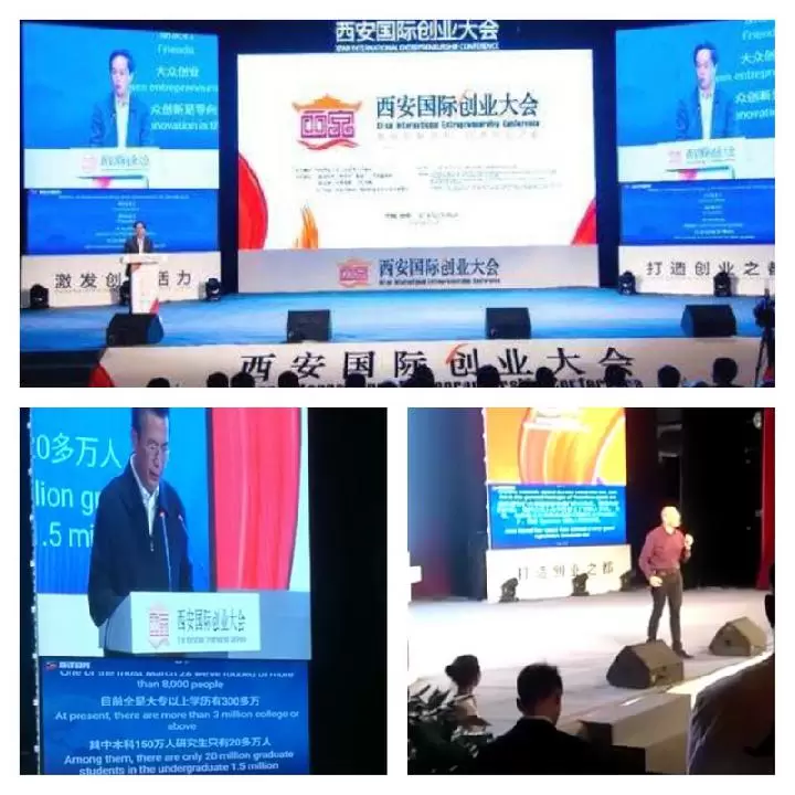 西安国际创业大会除了主会场开幕当天的系列活动外,还在西安全市各区县的咖啡街区、创业大街、高校等地点开设了分会场,6天时间内共计开展了包括创业峰会论坛、创展活动、创业赛事、创业讲座及培训共4大类30场活动。 新译人工智能同传服务体系在本次会议中主会场演讲台应用了全屏字幕方案,为国际创业大会主会场提供了新颖、高效的多语同传服务,得到西安市委市政府领导的高度赞扬。