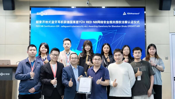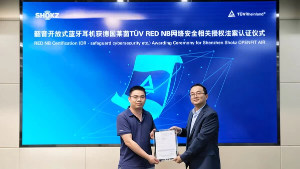 3月13日,国际独立第三方检测、检验和认证机构德国莱茵TÜV大中华区(简称"TÜV莱茵")为深圳市韶音科技有限公司(简称"韶音科技")旗下开放式蓝牙耳机颁发了欧盟CE RED网络安全相关法规认证公告机构(Notified Body)证书,表明韶音科技在网络安全相关领域的技术能力符合国际标准,为音频行业树立了新的安全标杆。