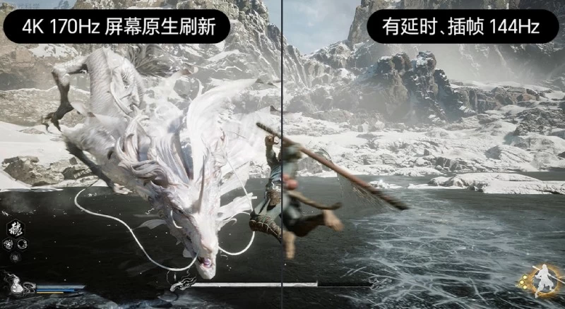 既然提到了游戏,那刷新率自然不能绕开,这也是一个老生常谈的话题了。高刷不是问题,低延迟不是问题,难的是0延迟+高刷。作为《黑神话:悟空》的官方定制电视,海信为E8N Ultra的游戏性能做了不少准备,同时也针对游戏本身进行了联合调校和专属优化。它拥有144Hz原生高刷,适配PS5/Xbox的4K 120Hz及VRR,游戏体验丝滑。部分条件下可超频至288Hz高刷。
