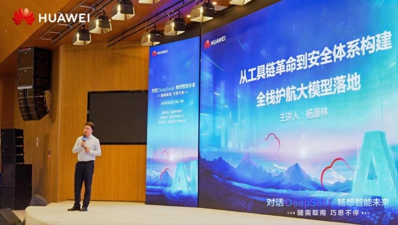 随后,华为云南政企MKT与解决方案销售部部长赵化锴在欢迎致辞中提到“DeepSeek大模型作为新一代人工智能的底座引擎,重构了竞争格局,引发了全球算力革命,人工智能正从技术探索转向真正的务实落地。华为始终坚持自主创新,基于自主创新的昇腾AI芯片,构建多种形态的算力底座,如:昇腾AI云服务、数据中心昇腾AI集群、轻量化的昇腾AI一体机等,为客户持续供应澎湃、长稳、可靠的算力,围绕各行业研发、生产、供应、销售、服务等全产业链,用大模型解决复杂问题,力求深入行业场景、赋能产业升级,让每家企业都拥有量身定制的AI大脑。目前,昇腾+DeepSeek已在政务、公安、金融、电力、教育医疗等多个领域得到应用。未来,华为将继续携手各科技企业,以AI大模型为技术支点,共同绘制智能时代的产业蓝图!”