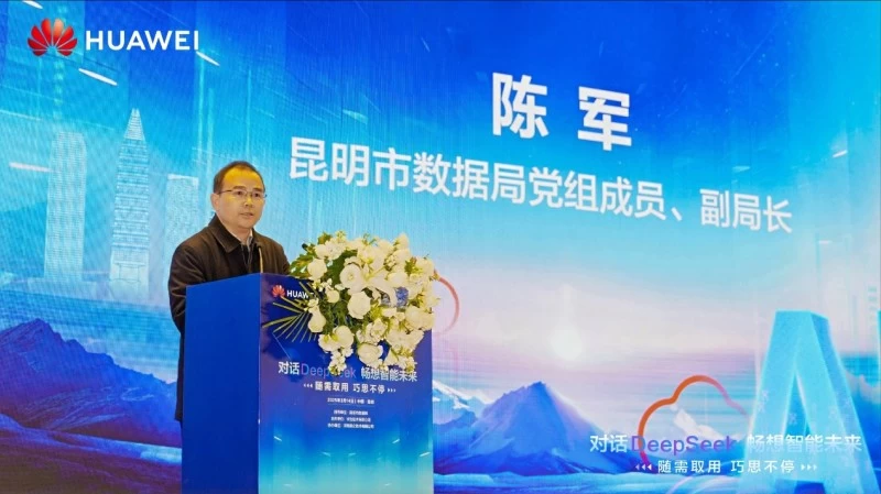 昆明市数据局党组成员、副局长陈军进行开场致辞,他提到“昆明市正在全面推进数字昆明的建设,数字基础设施建设实现了跨越式升级,为人工智能、大数据等前沿技术的实际应用提供强有力支撑。未来,昆明将继续深化与人工智能企业合作,共同推动AI技术在城市治理、公共服务、产业发展等领域的创新应用,助力昆明市实现数字化转型与智能化升级,打造智慧城市的典范!”