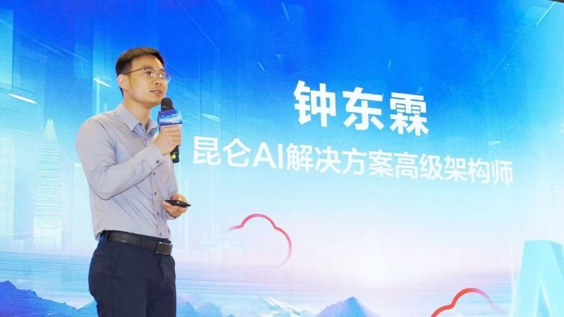 从软件创新到硬件落地,AI技术的全链条实践正在加速行业变革。昆仑AI解决方案高级架构师钟东霖就AI技术从训练到行业推理落地的趋势进行主题演讲,并强调端侧部署在行业应用中的重要性。