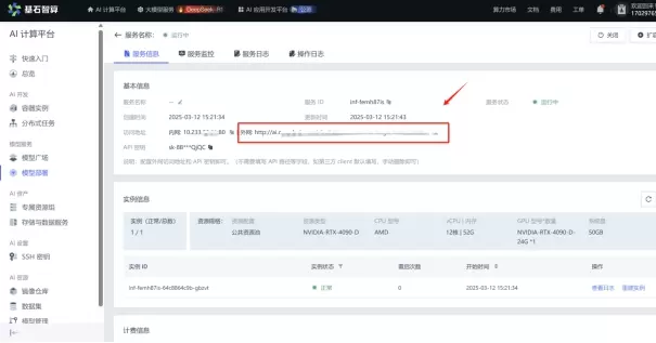 第三步:进入推理服务详情页面,在“服务信息”页签内,获取外网访问地址。