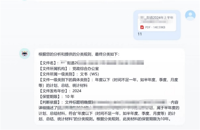 借助DeepSeek强大的推理能力,温州分公司联合瓯海区档案馆,打造“档案归档智能体”,自动化分析公文内容,比对归档规则,输出归档结果,准确率达到90%以上,分类归档工作效率提升近80%。未来,该智能体将持续迭代更新,通过实际使用搜集语料,进一步提升模型分析准确度。