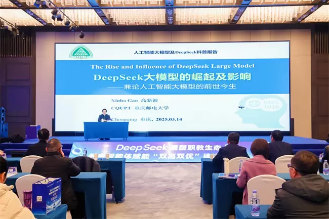 研讨会主旨报告环节,重庆邮电大学校长高新波以《DeepSeek大模型的崛起及影响》为题,系统讲解了人工智能大模型从神经网络到深度学习、再到以GPT为代表的预训练大模型时代的发展历程,强调了Transformer架构和规模定律的关键作用。并指出,未来,大模型将面临能源消耗、伦理安全等挑战,人类需提升提问能力、跨界融合思维,以应对 AI 时代的变革。
