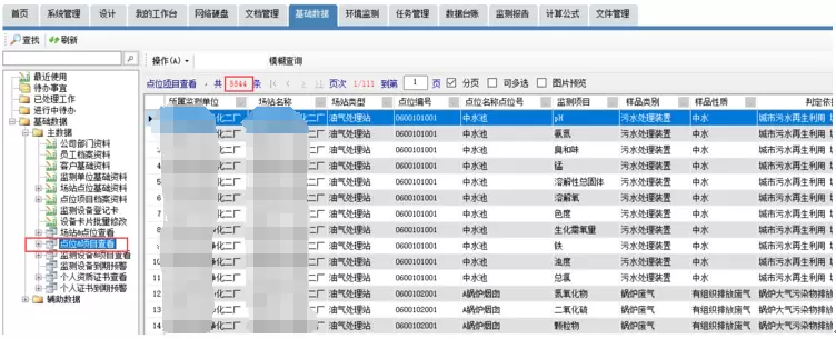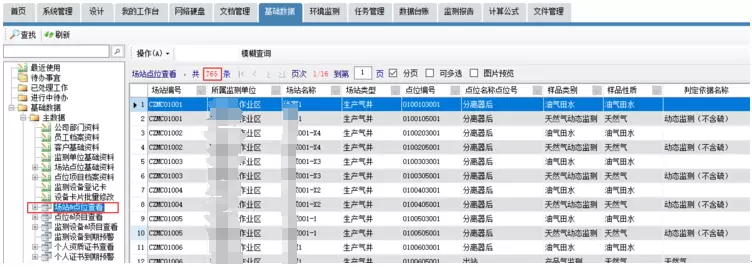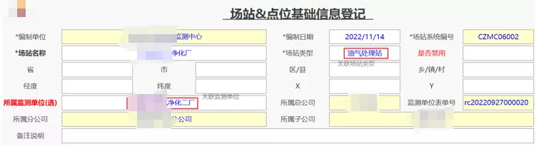 场站和点位资料放在一起进行维护,方便直观。新建场站第一次保存时,系统会自动生成每个点位的点位项目表单,维护人员去打开每个点位表单,维护该点位下关联的监测项目信息。