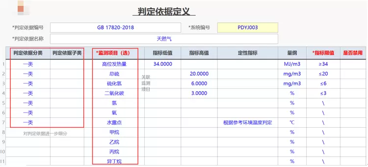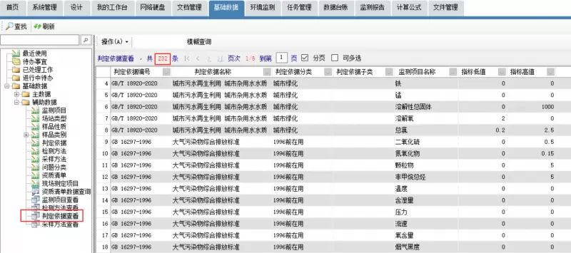 目前系统上共有判定依据18个,判定依据&监测项目232个。