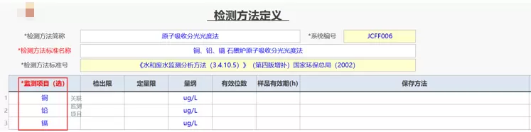监测项目名称修改后,相关联的基础资料:样品性质、判定依据、监测点位、检测方法、采样方法和监测设备对应的监测项目名称,系统会自动更新处理。但已经产生的业务表单上的监测项目名称,不会改变,保留之前的名称。