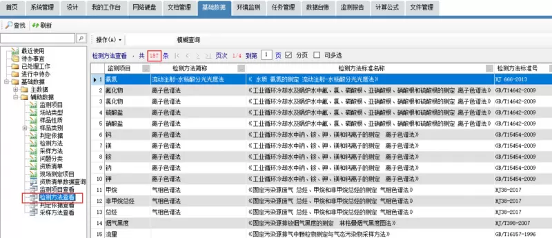 目前系统上共有检测方法109个,检测方法&监测项目187个。