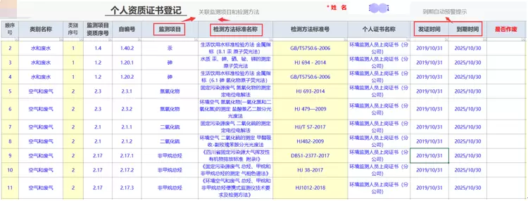 这里可以查看所有监测数据台账。包括导入的历史监测数据台账和通过监测结果登记表自动生成的监测数据台账。查询的数据可以导出到本机成EXCEL表。