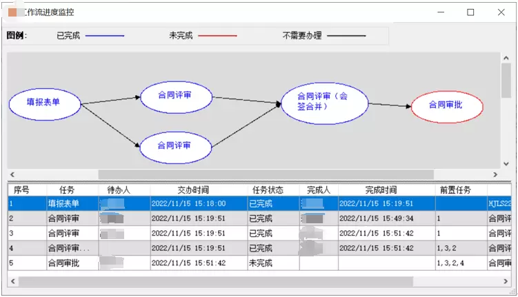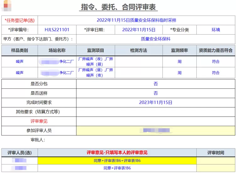 环境监测任务通知单在系统新建第一次提交后,系统会自动生成对应的指令委托合同评审表。提交人打开该指令委托合同评审表,补充完相关信息后提交,在系统开始走设定的线上审批流程。