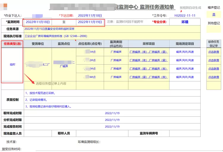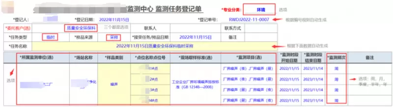 同时,环境监测任务通知单每一次保存提交,系统会自动补充更新监测任务工作大表的相关内容,此时任务状态为“待实施”。
