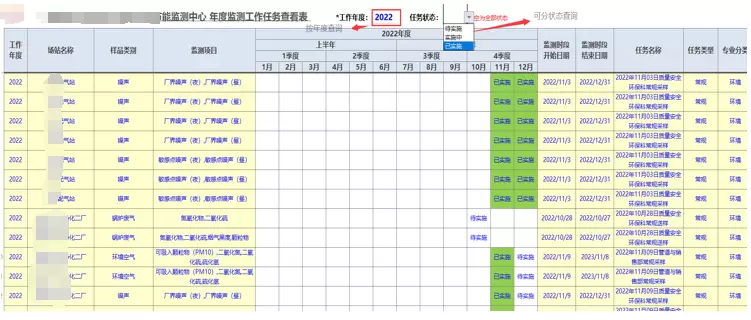 年度监测任务查看表采用实际业务中大家习惯的格式进行数据展示,年度、半年、季度和月份纵向排列,看起来更直观、清晰。