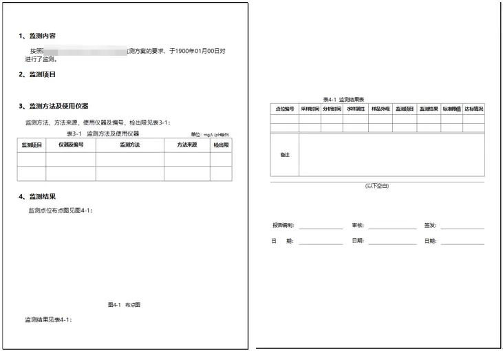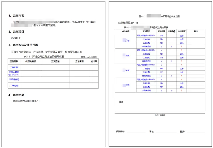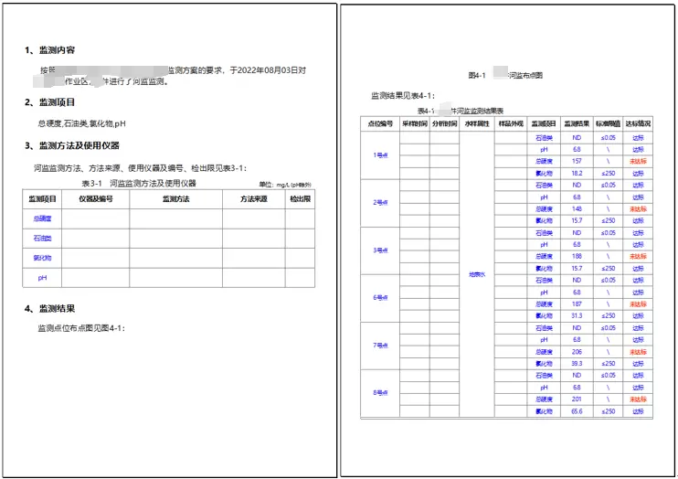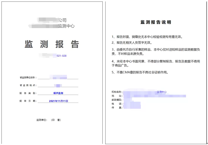 由于报告前二页内容相同,后面的监测报告,将只截图后二页。