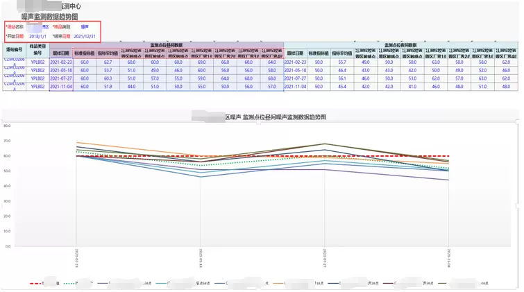噪声分昼间和夜间分别生成监测结果趋势图。