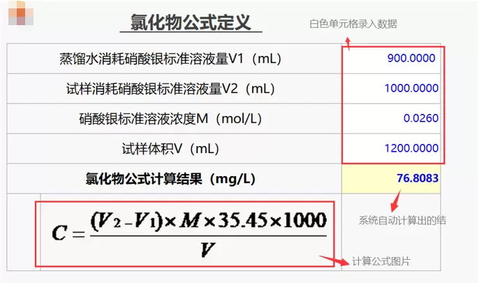 白色单元格需要使用者手工录入数据,系统按照计算公式自动计算出结果数据。计算公式图片展示了计算的过程,供使用者参阅知晓。