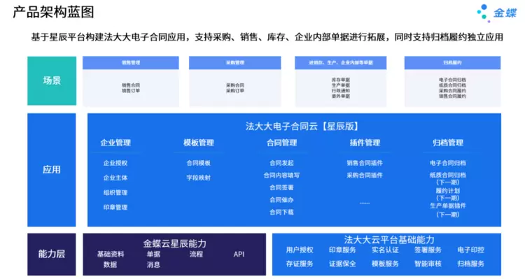 法大大此次参赛的“法大大电子合同云【星辰版】”,深度融合了AI技术,是国内首个深度集成金蝶云星辰的SaaS化电子合同解决方案,实现业务流、合同流、数据流三合一,助力企业连接客户与员工,提供便捷 、安全、有效的电子合同服务。