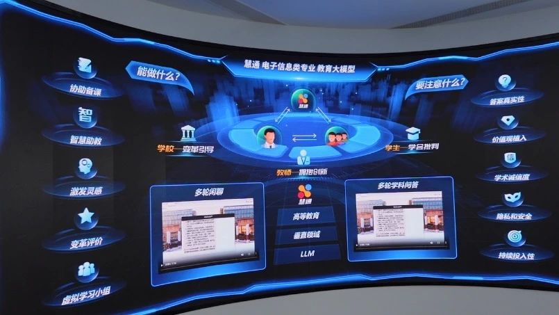 在西安市长安区西沣路兴隆段266号,坐落着国内电子信息类强校西安电子科技大学。西安电子科技大学信息化推进办公室主任苗启广告诉记者,2024年9月,西安电子科技大学正式启用了自主研制的慧通大模型,用于支持学校教、学、管、评四个方面的创新。在“教”的方面,这个模型可以辅助教师生成教案与制定个性化习题,辅助评阅学生的学位论文;在“学”的方面,可以支持多轮学科问答,提高学生获取知识的效率。据了解,与一般大模型不同,慧通大模型基于电子信息类知识进行了专门训练,回答专业学科问题更精准、更高效。在学校管理方面,大模型可以用于解释学校政策、辅助学校决策;在“评”的方面,大模型可以分析教学行为,加强课堂教学质量过程性评价,提供动态评估结果、测评结果等。