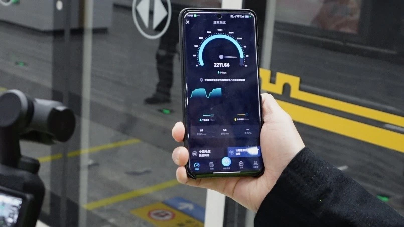 在走访西安期间,记者体验了地铁8号线,发现5G-A信号全程都很好,网络联接速度快且稳定。据中国电信西安分公司云网规划建设部工程师李达刚介绍,西安地铁8号线在建设期间就由陕西电信全程部署了三载波5G-A网络,实测站厅、站台最大下行速率4001Mbps,穿行隧道时车厢下行速率可达1761Mbps,整体平均下行速率约1.85Gbps。在这个网速下,在高铁里看4K直播、玩大型网络游戏、下载大文件都不是问题。