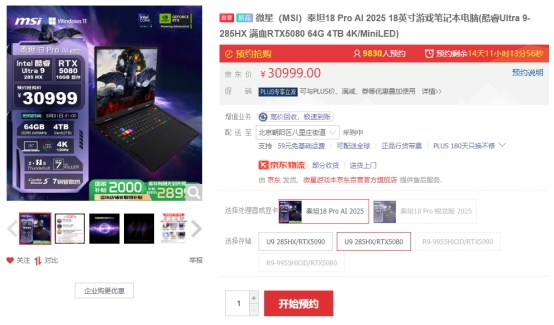 微星泰坦18 Ultra/Pro新品游戏本预约:Ultra 9+RTX5090旗舰登陆