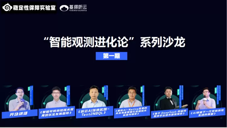 2025年2月28日,由中国信通院稳定性保障实验室主办、基调听云协办的“智能观测进化论”系列沙龙第一期圆满召开。本场沙龙特别邀请头部可观测企业与云厂商可观测技术负责人带来深度分享,聚焦于AI大模型等智能化技术与可观测性技术融合的最新发展趋势与应用前景,分享可观测性最佳实践案例,吸引了线上数千名业内人士的热情参与。