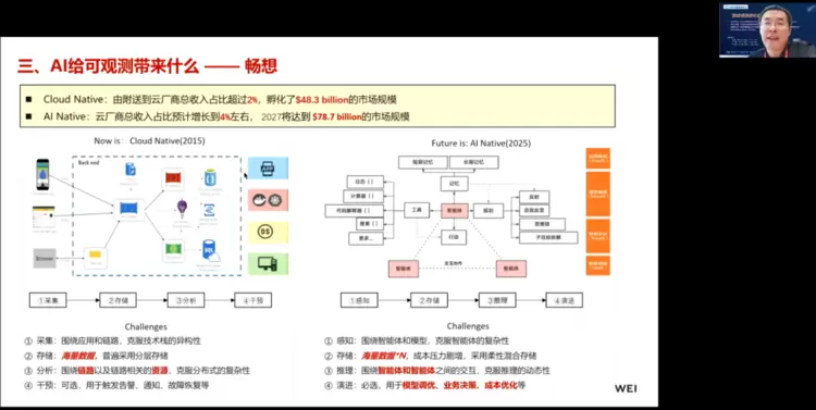华为云计算技术有限公司可观测架构师 郝利鹏发表了《面向Al-Native应用的未来海量智能化运维技术实践与探索》主题演讲。他首先针对“AIOps是否是个摆设”这一问题,强调了AIOps在提升运维效率、预测故障等方面的巨大潜力,并指出当前AIOps应用中的挑战与改进方向。随后,他分享了华为云在可观测AIOps领域的探索实践,展示了AIOps如何助力企业实现智能化运维。最后,他分析了大模型时代给运维领域带来的冲击与机遇,并提出了应对策略,包括加强人才培养、深化技术研究等,为企业运维转型提供了有益参考。
