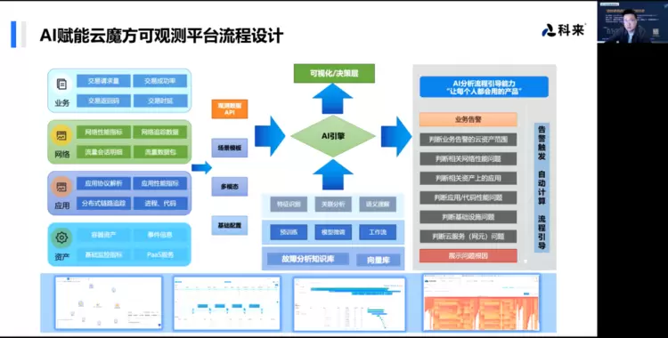 科来网络技术股份有限公司产品总监 冀佳鹏发表了《AI赋能下一代可观测性系统的展望》主题演讲。他分享了科来公司利用AI技术在可观测性领域的最新探索,通过智能运维AI平台,实现了异常检测、故障定位等场景的自动化分析。介绍了AI应用平台在知识库、工作流编排、数据可视化及交互方面的实践经验,以及在知识问答系统、维护操作助手等多个场景的落地经验,还介绍了面向AI基础设施的可观测能力建设情况,最后,他分享了一些关于可观测产品的思考和观察。
