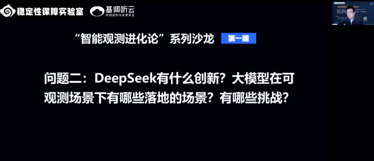中国信通院云大所云计算部副主任 郑立 开场致辞。他指出,国产AI DeepSeek凭借其强劲的性能、独特的技术架构和低成本的训练方案,迅速成为行业焦点,在这场数字化转型的浪潮中,DeepSeek 也在重新定义可观测性的技术边界与实践范式。部分企业已实践DeepSeek智能体,识别问题根因,打造全栈运维助手,产业界正不断的拓展智能可观测技术的发展上限,我们不仅是技术发展的见证者,更是这场观测革命的缔造者。他预告了系列沙龙的召开计划,并提出了本场沙龙将讨论的三个业界关心话题,激发与会者思想碰撞,为行业带来新的启发与思考。