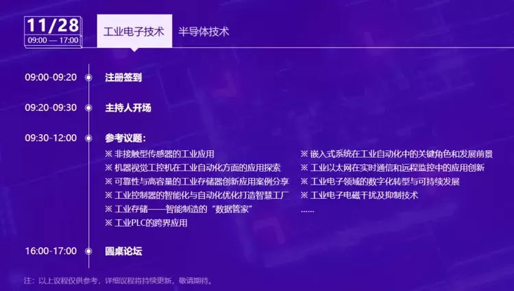 为推动工业电子技术的进一步创新与应用,2024年,OFweek电子工程网将继续推出面向电子工程师、技术人员的专场在线会议「OFweek 2024工程师系列在线大会」,分别从技术和应用维度邀请行业内优秀代表厂商,技术专家们出席大会,分享最新技术、案例等干货内容。OFweek 2024工程师系列在线大会将结合行业发展热点,举办不同主题的在线直播,分别为工业电子技术专场,半导体技术专场等,聚焦行业前沿技术及实践经验,为相关行业工程师们、技术人员、积极关注行业动态的人士提供学习和交流平台。