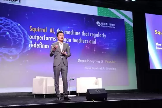 现场,中国“人工智能+教育”领军企业乂学教育松鼠AI创始人栗浩洋就人工智能如何从根本上改变教育产业发表演讲,引起了世界各地AI技术领先创业公司创始人、风投公司高管及技术精英的极大关注。