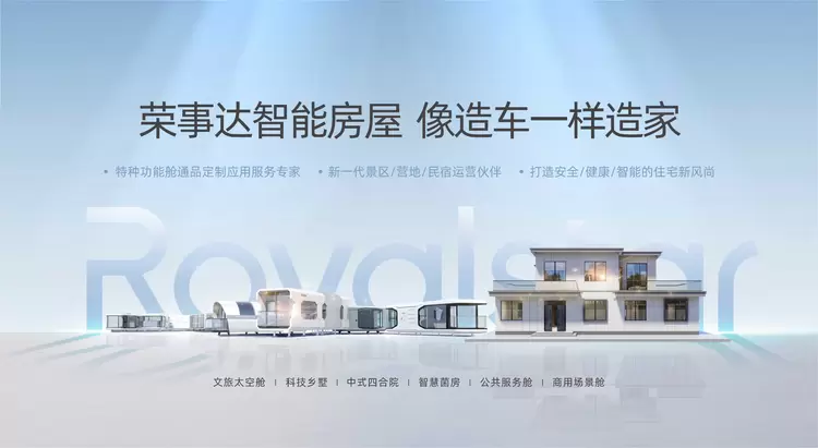 荣事达智能房屋秉持“像造车一样造家”的创新理念,致力于特种功能舱的通品定制,打造专业、全面的应用服务专家,在文旅场景应用上研发智慧文旅太空舱,成为新一代景区、营地、民宿的运营伙伴,在建筑领域内打造智慧住宅,引领安全、健康、智能的住宅新风尚。