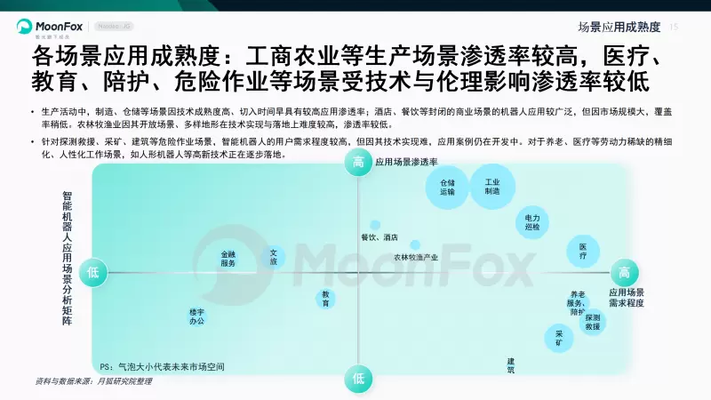 2.3 各场景应用成熟度:工商农业等生产场景渗透率较高,医疗、教育、陪护、危险作业等场景受技术与伦理影响渗透率较低
