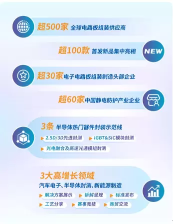 其中,同期展会ICPF半导体封测技术展针对2.5D/3D等先进封测,IGBT&SIC模块封测,光电融合及高速光通模组封测的工艺技术,开展ICPF 2.5D和3D及先进封装技术及应用大会、ICPF功率半导体技术及应用大会、ICPF光电融合及高速光通模组封测技术及应用大会三大论坛,配合升级推出半导体热门器件封装示范线,多维赋能产业链协同发展,创造业务新机遇。