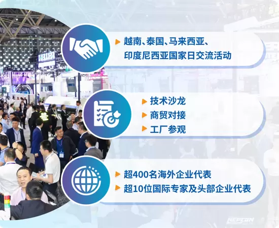 以创新之势,NEPCON首创国家日交流活动,举办越南、泰国、马来西亚、印度尼西亚国家日交流活动,邀请超400名海外企业代表,通过技术沙龙、商贸对接、工厂参观,搭建合作交流、信息互通的国际桥梁。