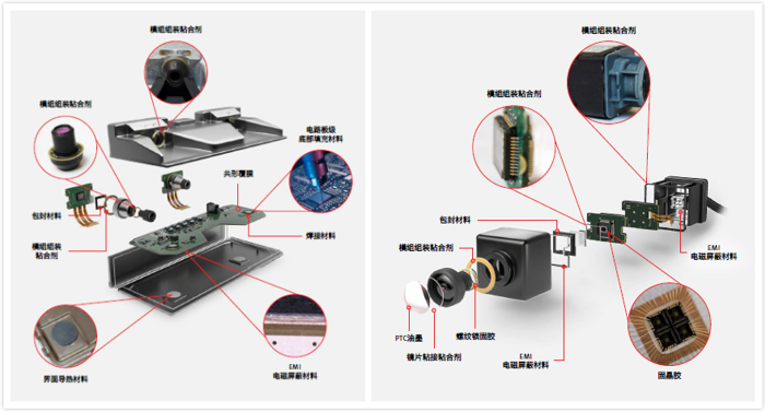“看得清”——车载摄像头 达到L3安全级别的汽车会包含至少七组到十组的摄像头,汉高提供从图像处理芯片到组件连接、热管理、PCB保护以及最终镜片装配的高质量、高可靠方案, 使车载摄像头能够在极端温度、恶劣行驶环境下保持设备稳定运行以及解决冷热温差下的镜头起雾等问题。