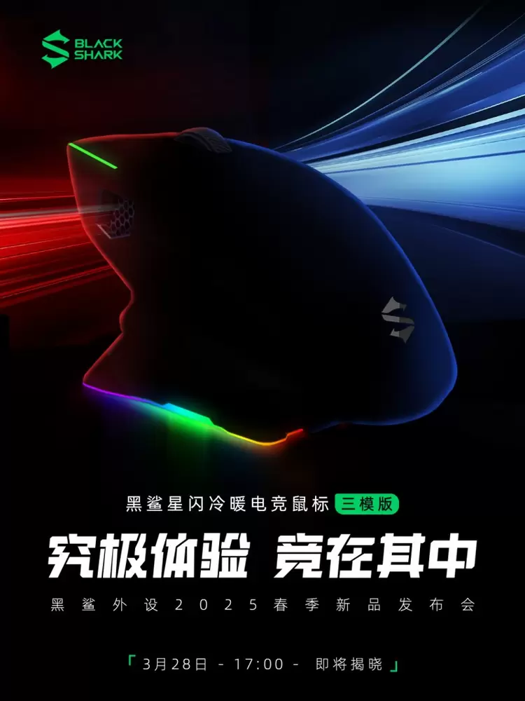 - 黑鲨外设2025春季发布会定档3月28日!全新冷暖鼠标黑科技引全网猜测!