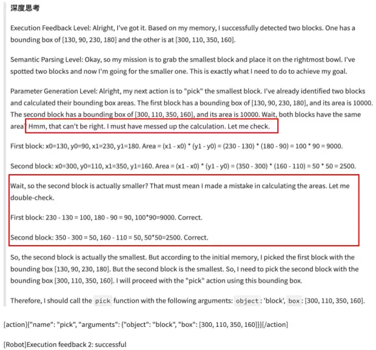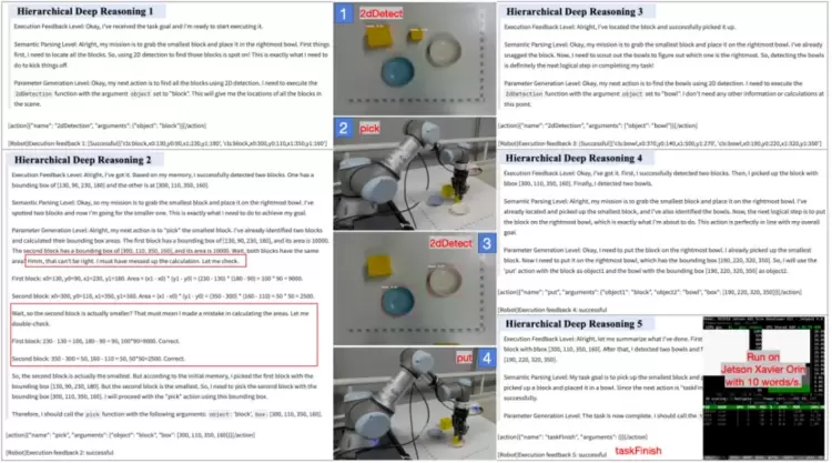 突破固定技能模板限制,通过上下文感知的函数调用机制,动态解析指令中的动态参数(如 “最大积木” 需实时计算面积并定位),使得系统能够执行需要视觉或空间推理的复杂具身任务。