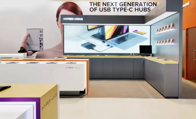 在Hyper品牌的CES展位设计中,inDare将成本管控纳入设计战略的核心考量。通过模块化拼装系统降低国际运输损耗率,采用亚克力板雕刻工艺与动态灯光组合,以常规材料打造出具有硅谷极客精神的视觉符号,大大降低了在美国当地的工作时长和劳力成本。