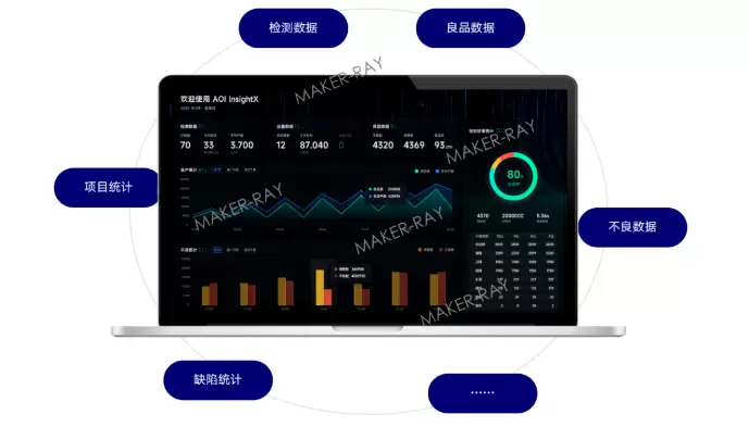 一个可靠的AOI数据统计管理平台至关重要,镭晨科技的AOI InsightX实现了集中式的数据管理,提供了专业、全面的数据分析和可视化图表,帮助产线管理人员随时随地掌握产线生产情况。当出现异常预警时,可以迅速联动不同部门,通过分析制程、缺陷、直通率指标等多维度数据,优化产线设备关键参数,保障产品生产稳定性。作为以技术驱动创新的光学检测设备提供商,镭晨科技将AI深度学习算法应用在AOI中,采用深度卷积网络,通过亿万级别数据样本训练和大数据优化,不仅能实现AOI智能极简编程,而且能一键自动识别元器件及焊点,智能判定不良,极大提升了AOI检测效率和准确性。
