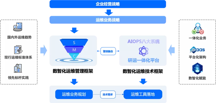 战略文化(Strategy):从使命愿景、客户价值、文化管理出发,制定运维业务战略,包括管理制度、业务流程、技术标准、操作手册,推动企业数智化运维转型与组织协同;